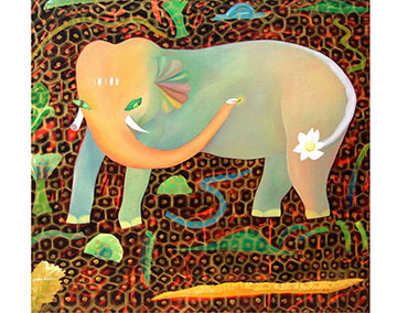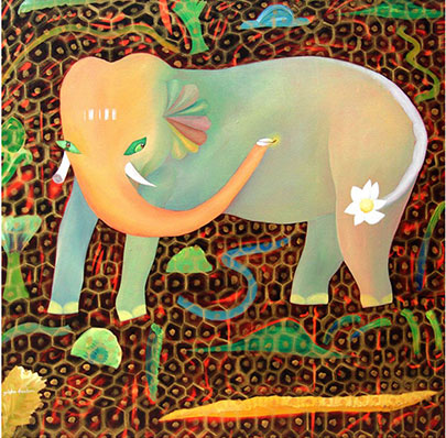 Babu Xavier: He is an artist whose canvases come alive with vivid colours and fantastic creatures. These fantastic, confusing figures represent the powerful and lucid ideas Xavier has. As the artist himself admits there are lots of contradictions in his paintings. Born in Kerela, where he continues to live he is a self-taught artist who learned under the tutelage of Jayapal Panicker at Cholamandal Artist Village near Chennai. Soon he moved to Mumbai where his art was received with raving reviews and there has been no looking back since then. One of India’s leading contemporary artists he has innumerable solo shows to his credit in India as well as several shows abroad. His recent works later to 2002 have the motif of a barcode representing the consumerist society of the 21st century. Recipient of several prestigious awards his works are in the collection of several buyers in India and abroad including in the collection of eminent artists like M.F Hussain and Yusuf Arakkal.